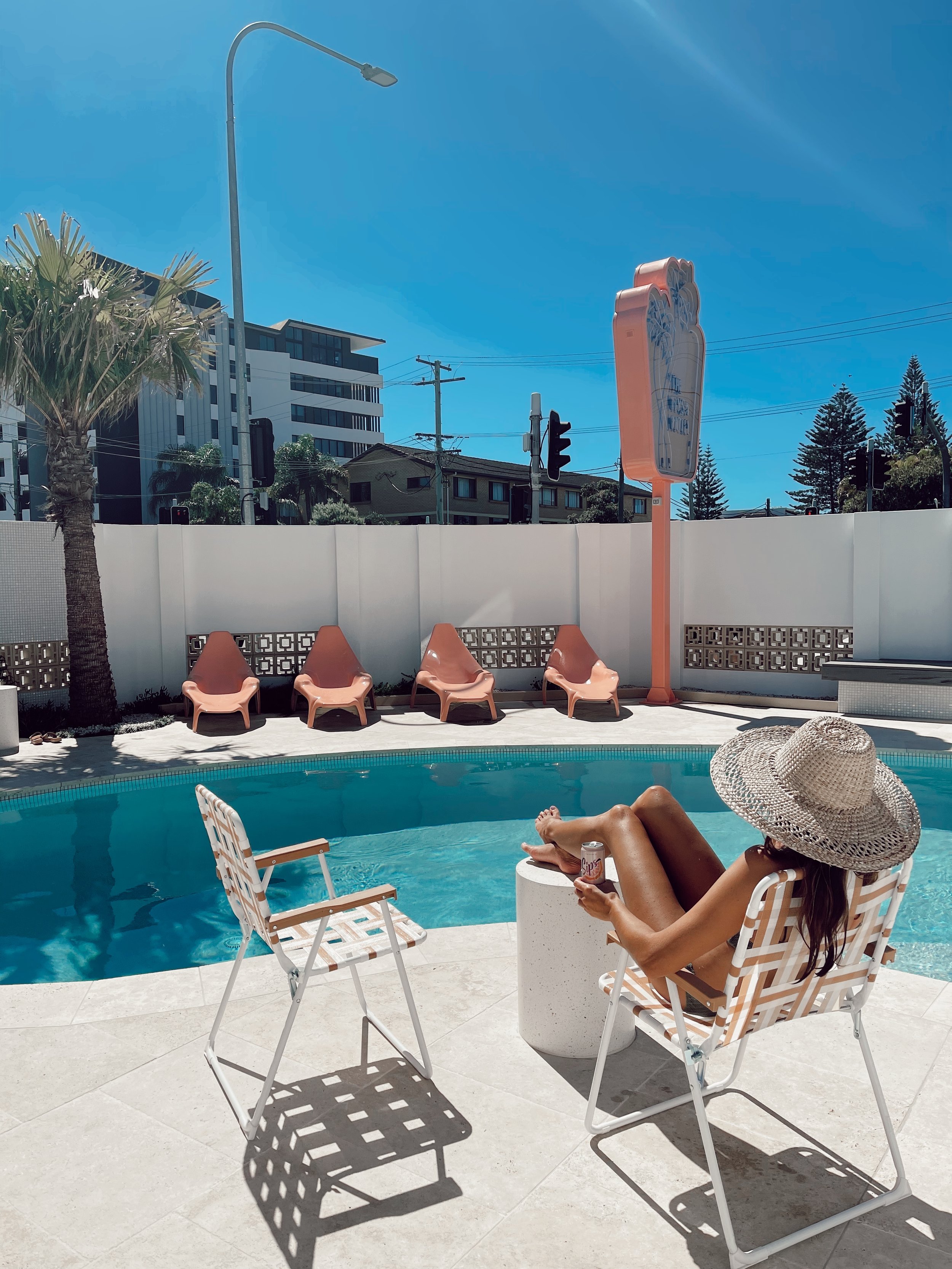Eliza: We weren’t looking for a motel, but we’ve always loved old buildings with a story. When the Palm Trees Motel went up for sale in 2019, we saw potential. It had so much character — breeze blocks, pink tiles, vintage signage. But it had also been left to fall apart. We knew we could bring it back in a way that honoured the bones, but reimagined the purpose.