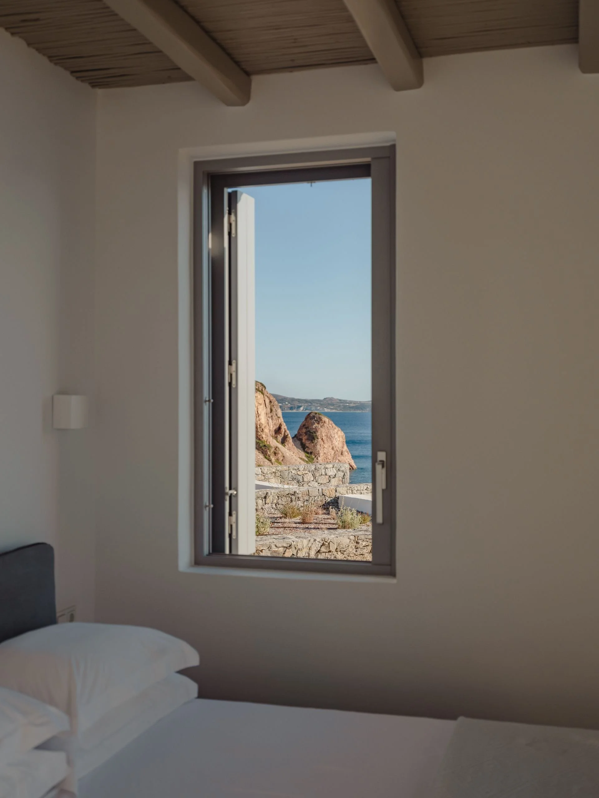 Volcanic minimalism at the edge of the world. You’ll dream in lunar whites and basalt blacks.Must-Do: • Morning swims in Skinopi’s private coves.