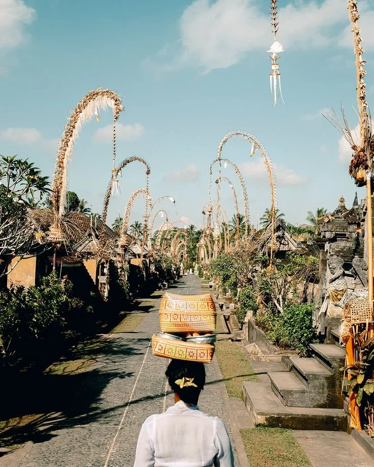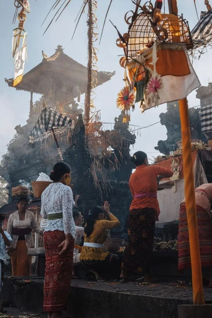 Balinese greeting = soft smile, hands in prayer at heart, gentle bow. Don’t wave or fist bump at a temple - it’s weird.