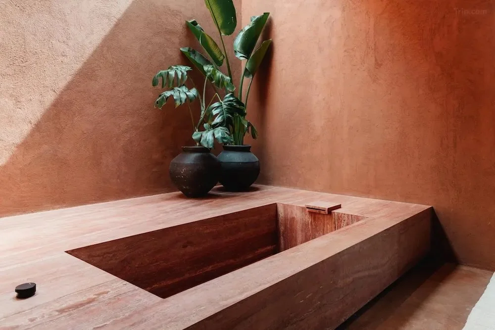 Floating copper bathtub ritual in the jungle spa.