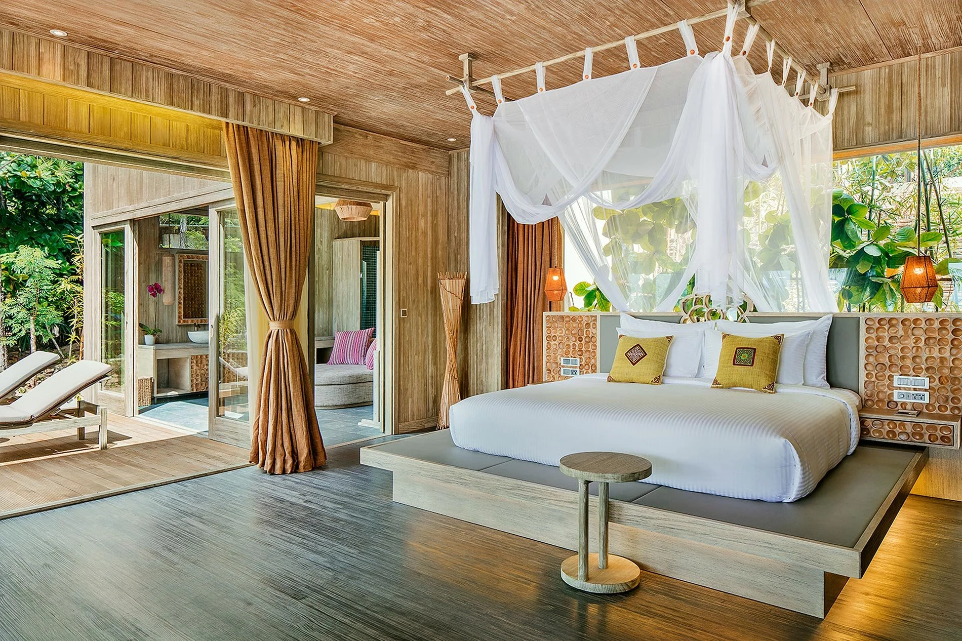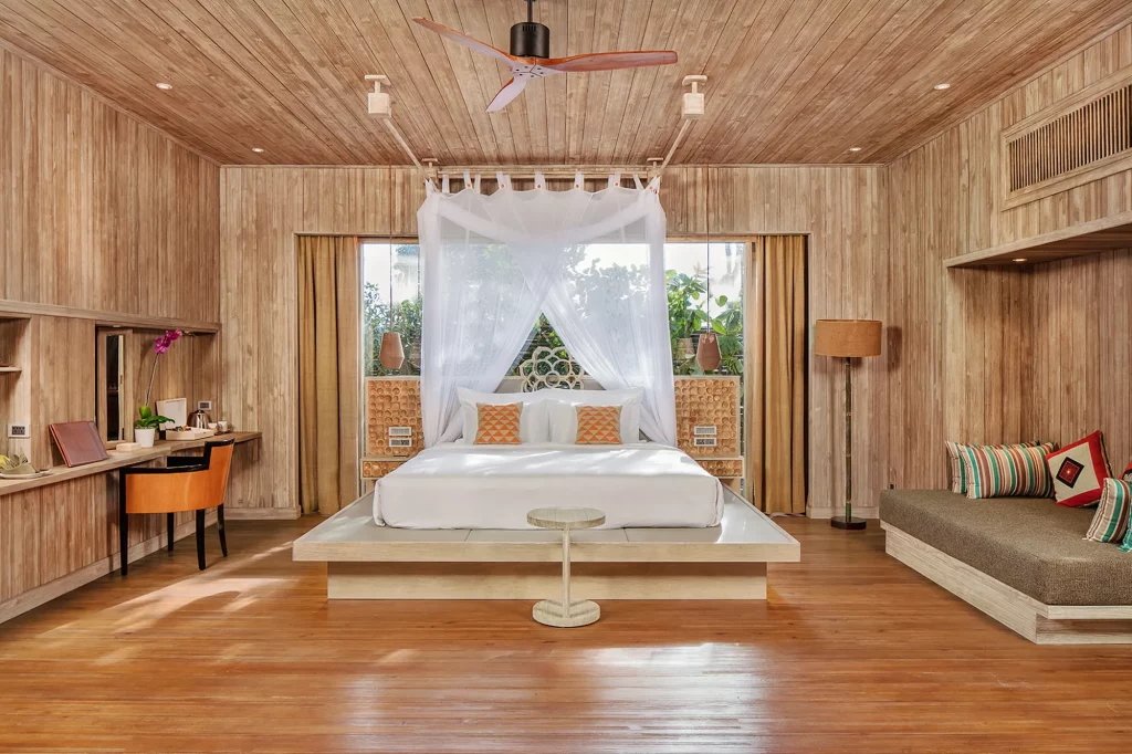 The villas are studies in sensuality. Wood-framed, water-kissed, and world-quiet. Every element ,from handwoven baskets to reclaimed timber soaking tubs, honours place and slows pace.