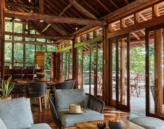 Materials are hyper-local - bamboo beams, volcanic stone, reclaimed timber - designed with natural airflow and zero plastic in sight.