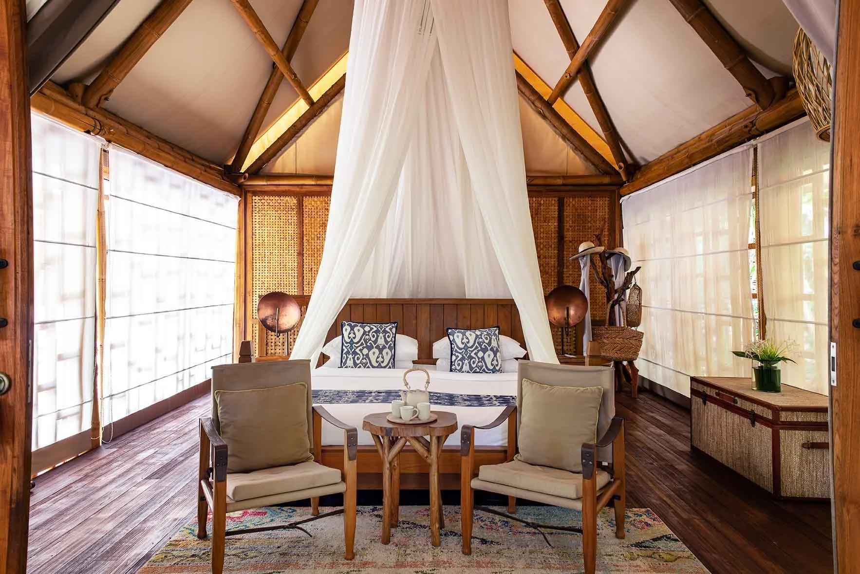 FIRST. The Tented Beach Suites – Everyone talks about the overwater bungalows, but it’s the rustic-chic explorer energy of these beachfront tents that left us speechless. Vintage expedition vibes meet barefoot luxury - think canvas, teak, and a salt-kissed breeze.