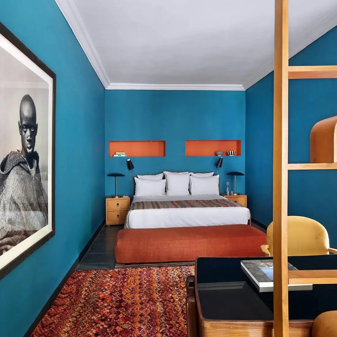 El Fenn’s 31 rooms and suites are all different - but all hypnotic. You might sleep under hand-painted ceilings, bathe in a freestanding tub tiled in lapis blue, or wake to calligraphy walls and antique lanterns. Some have private plunge pools or fireplaces. All have tactile decadence, from velvet upholstery to Berber textiles to curated art that surprises and stirs.