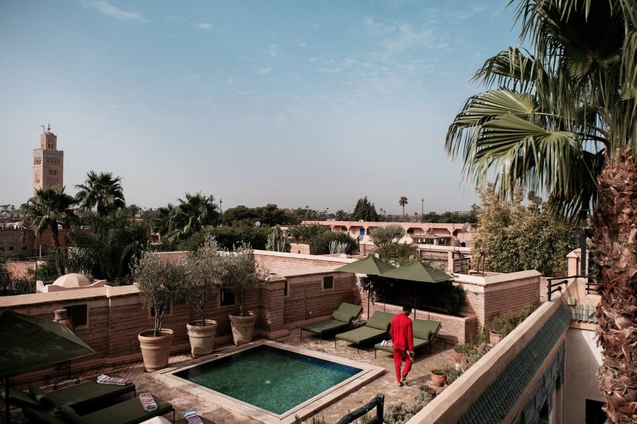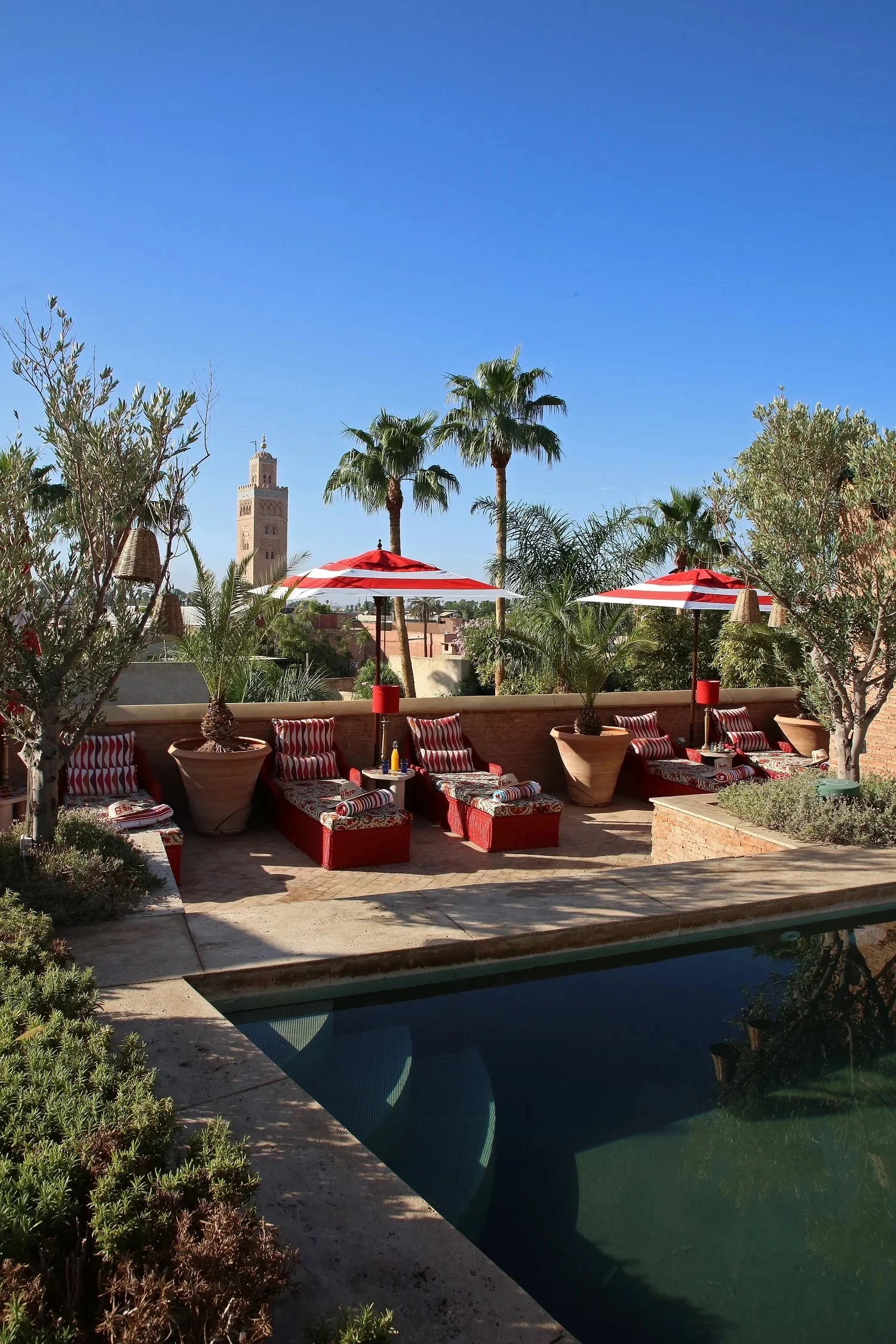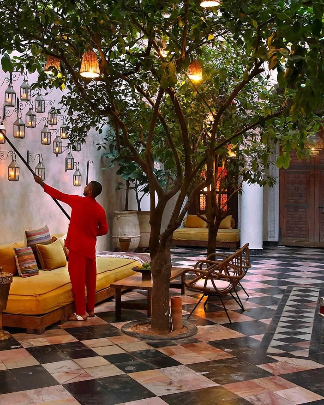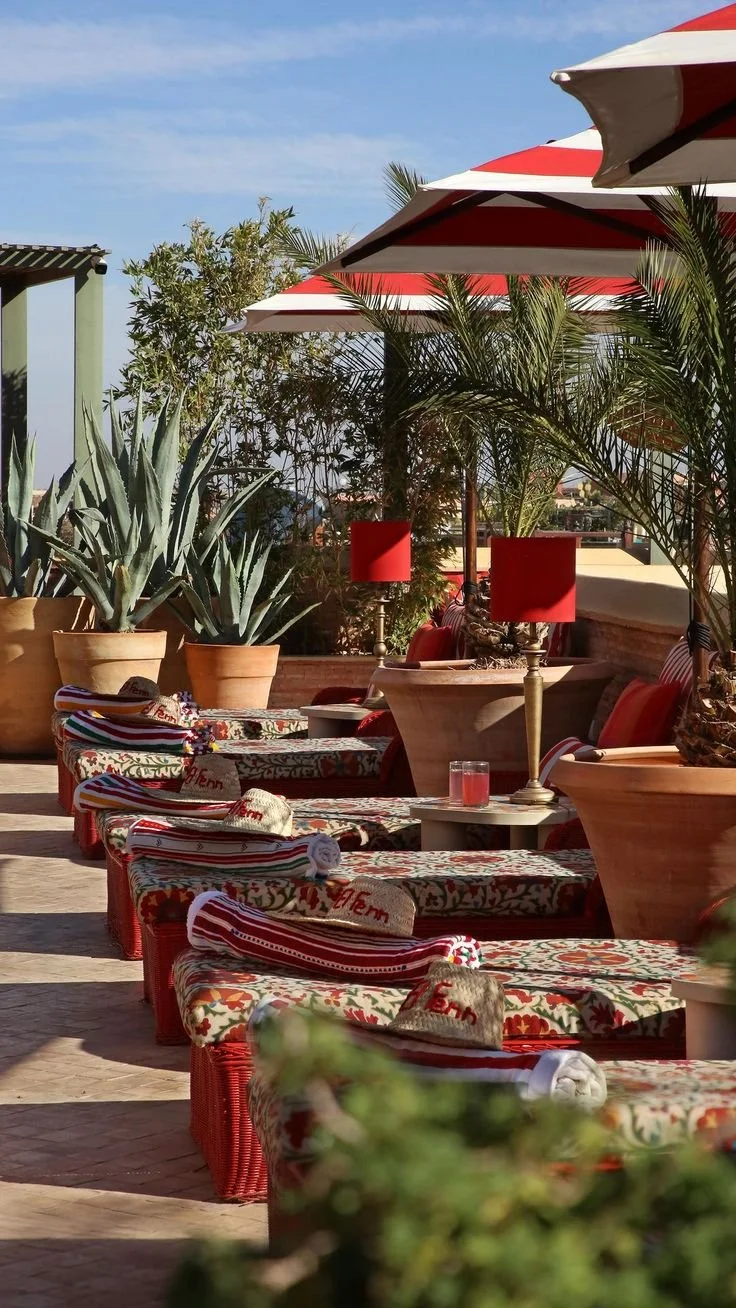 FIRST. The rooftop garden – a botanical refuge perched above the medina, where yoga mats meet skyline views and slow breakfasts become cinematic scenes.