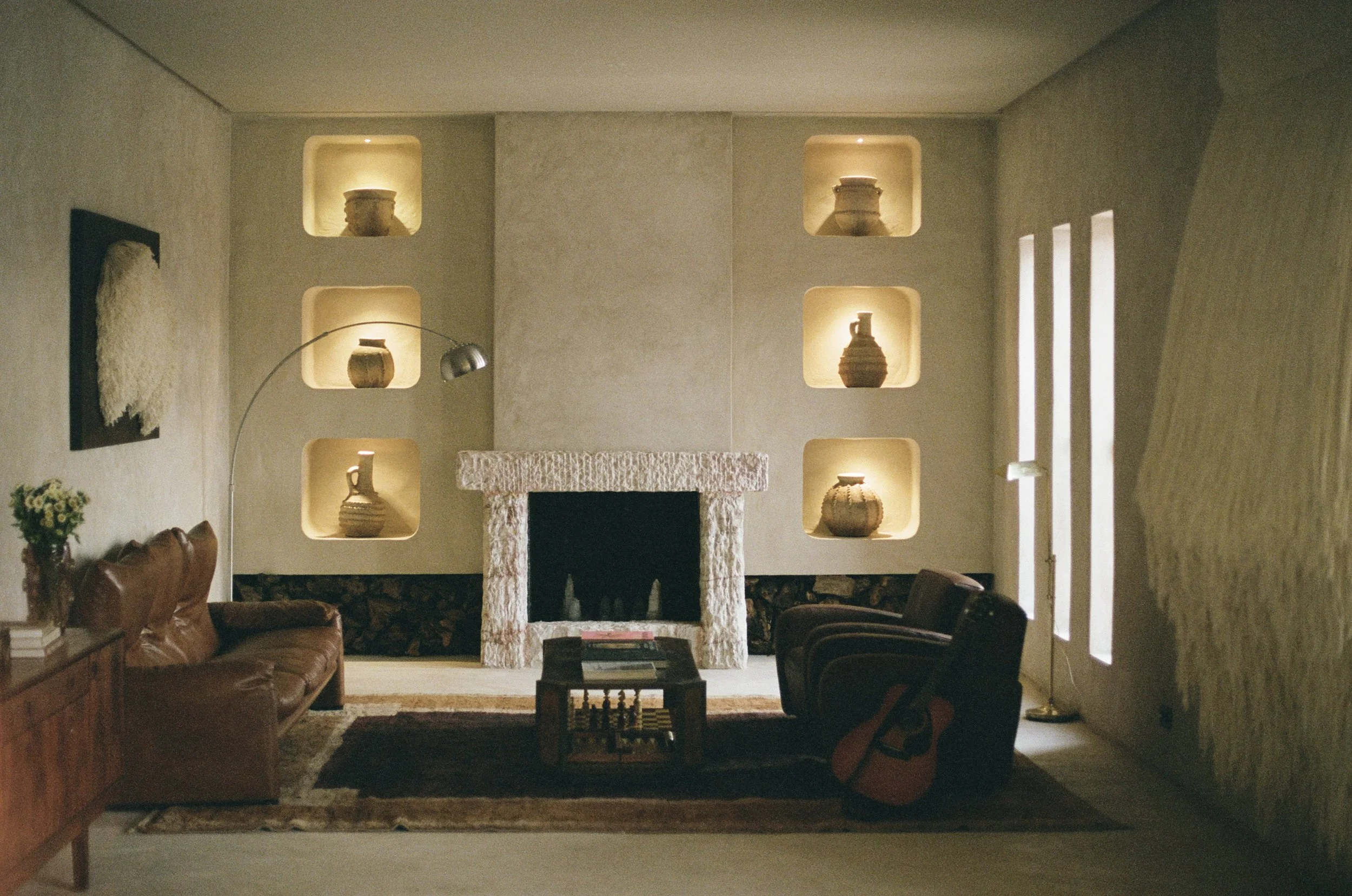 Built by a husband-wife duo with roots in regenerative agriculture, natural building, and Moroccan craftsmanship, this hideaway flows like a secret gently passed between generations. Olive groves stretch to the mountains like silvered rivers. Bees move in and out of hand-carved hives. The walls glow with hand-trowelled plaster, coloured by clay, lime, and light filtered through fig leaves. Time here doesn’t pass - it gathers.