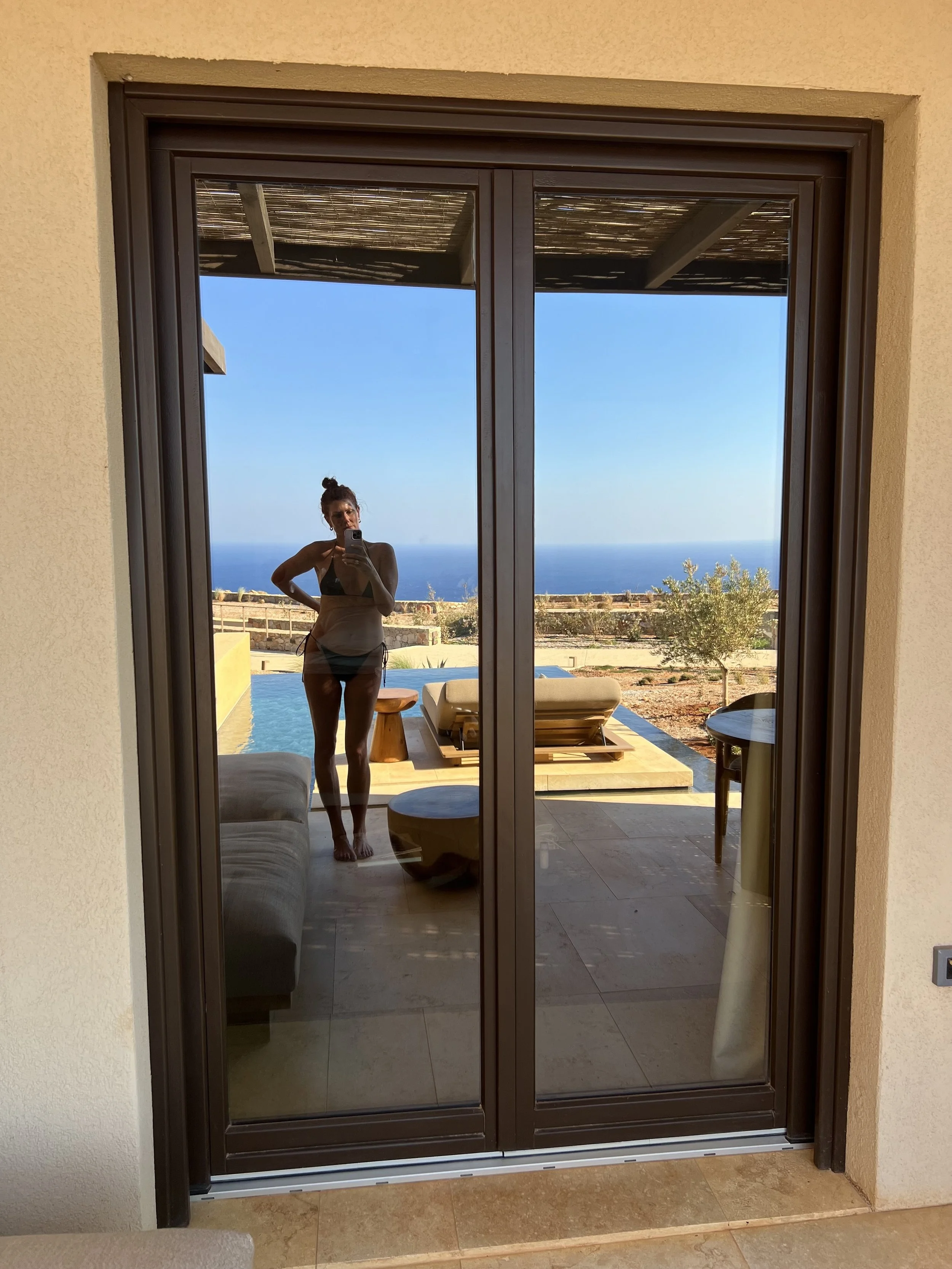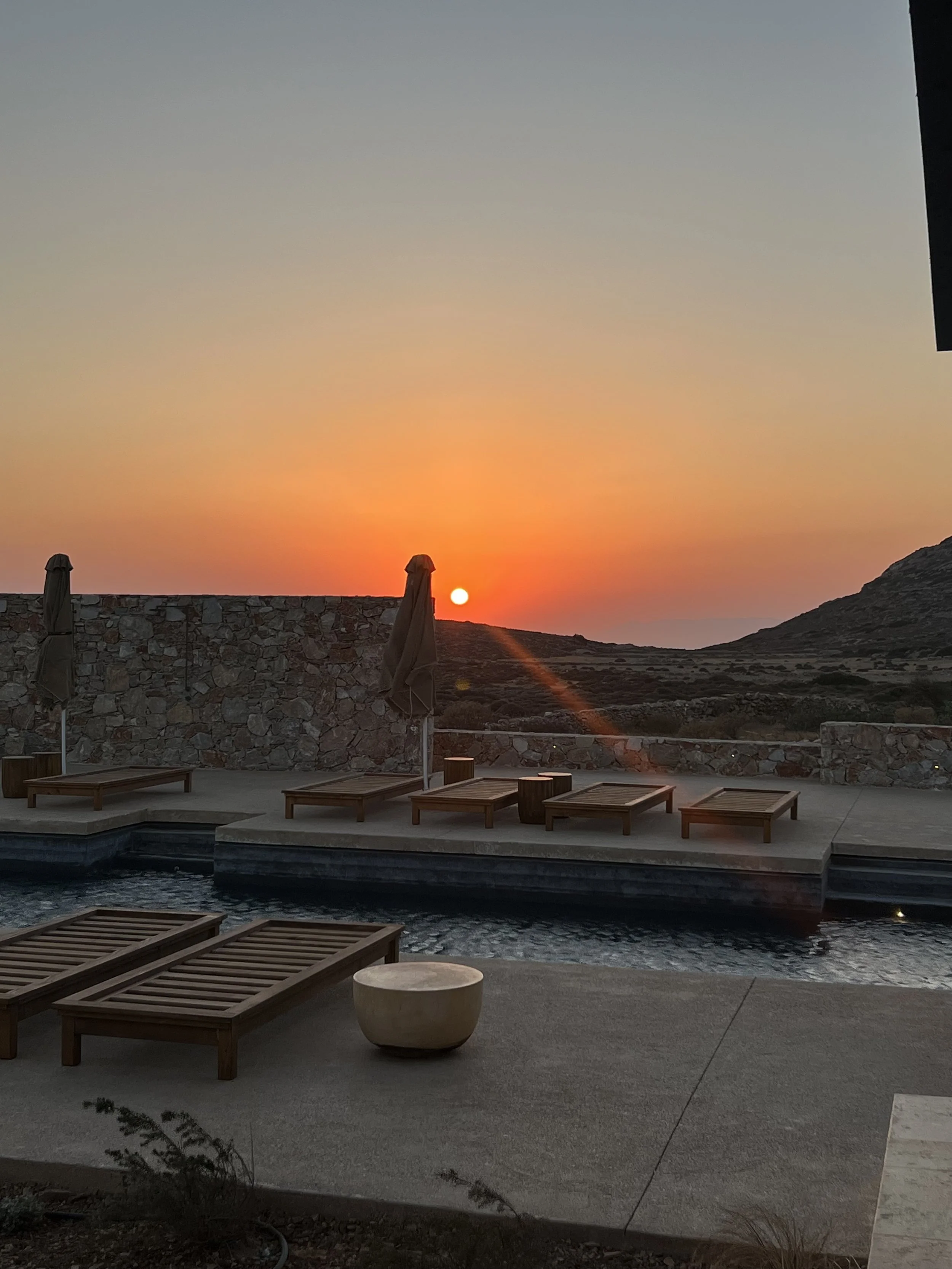 FIRST. The pools – Every suite has a private, horizon-facing pool that turns swimming into ritual. Watch the Aegean shift from silver to sapphire to onyx.