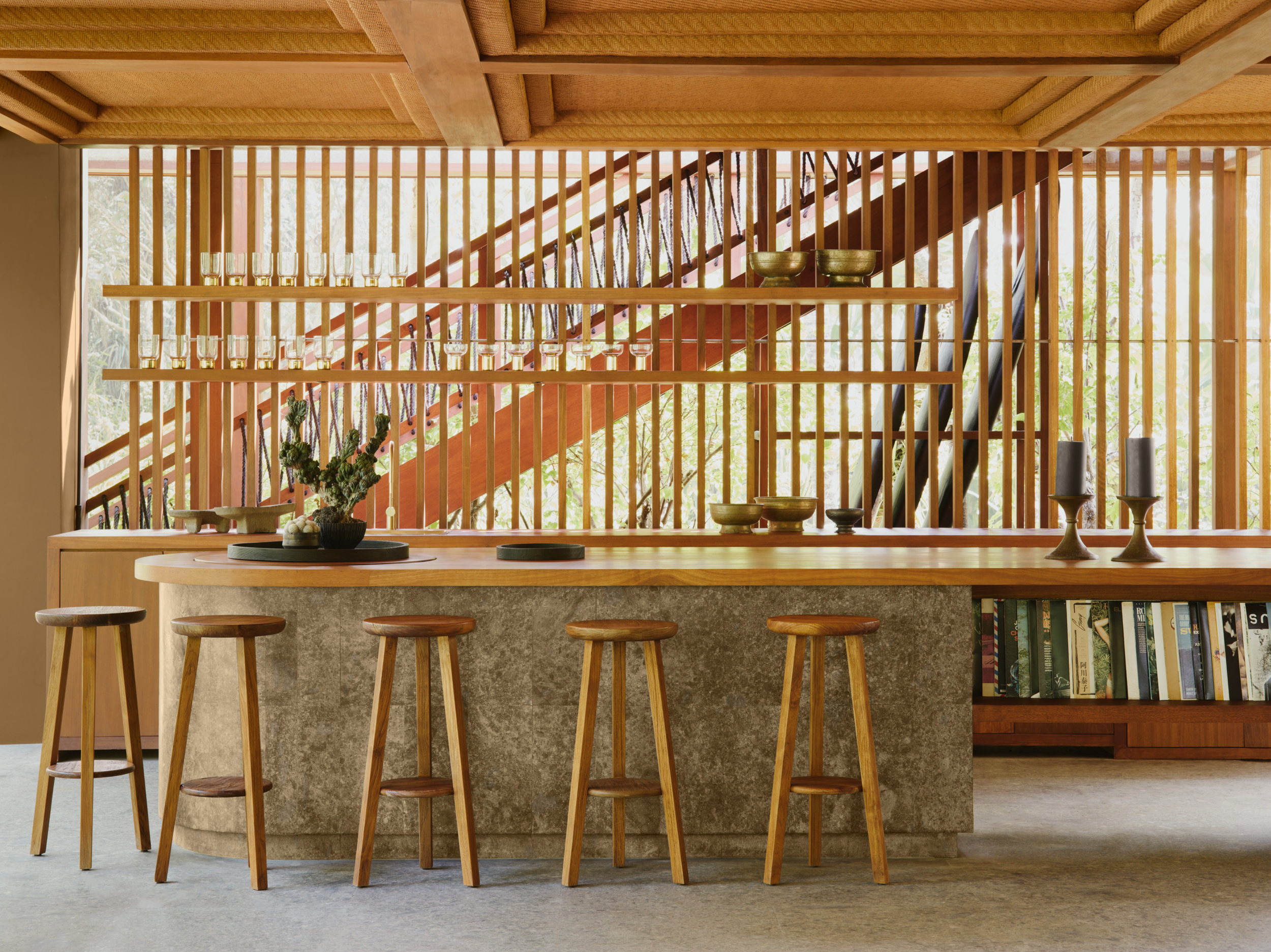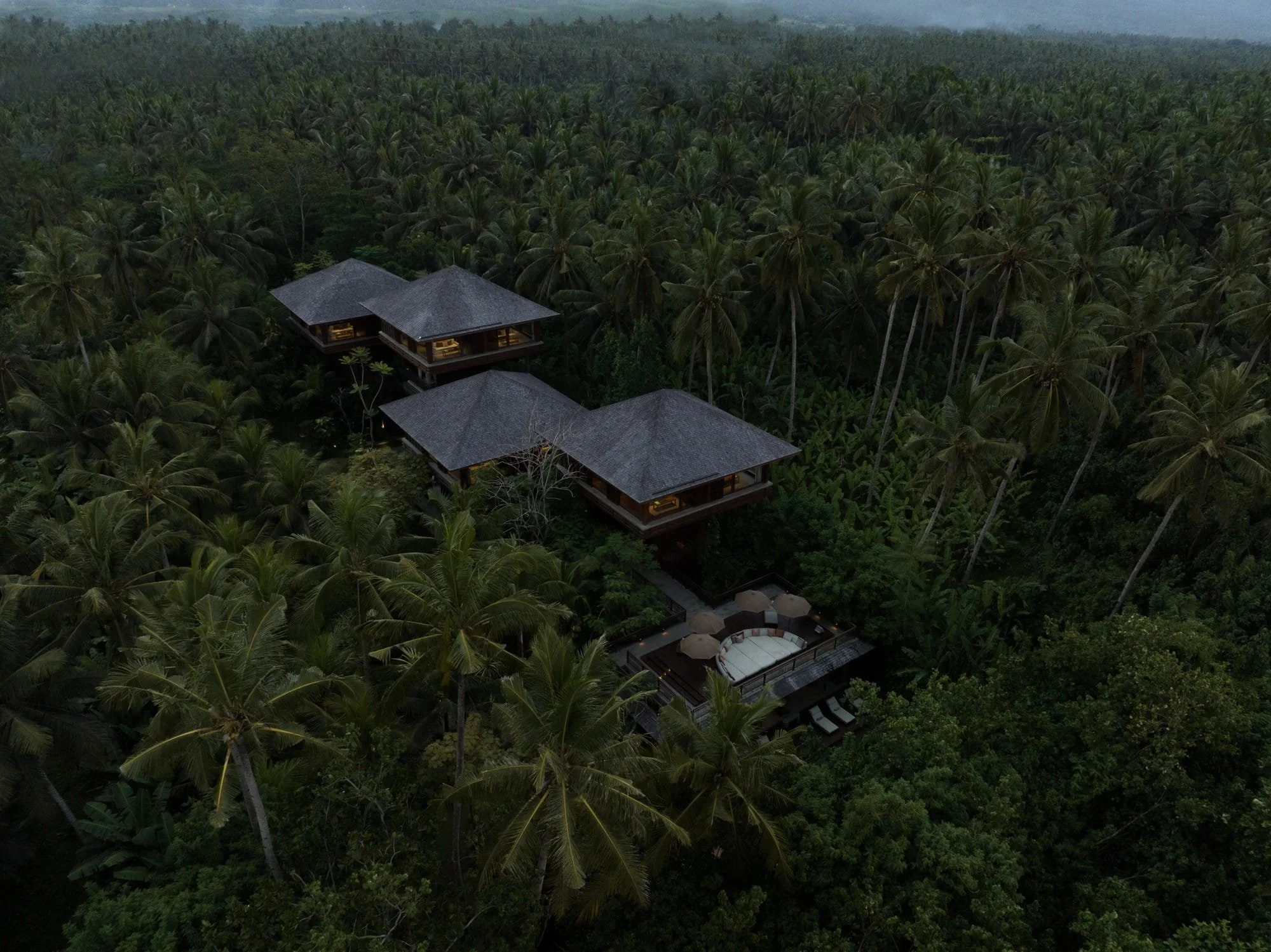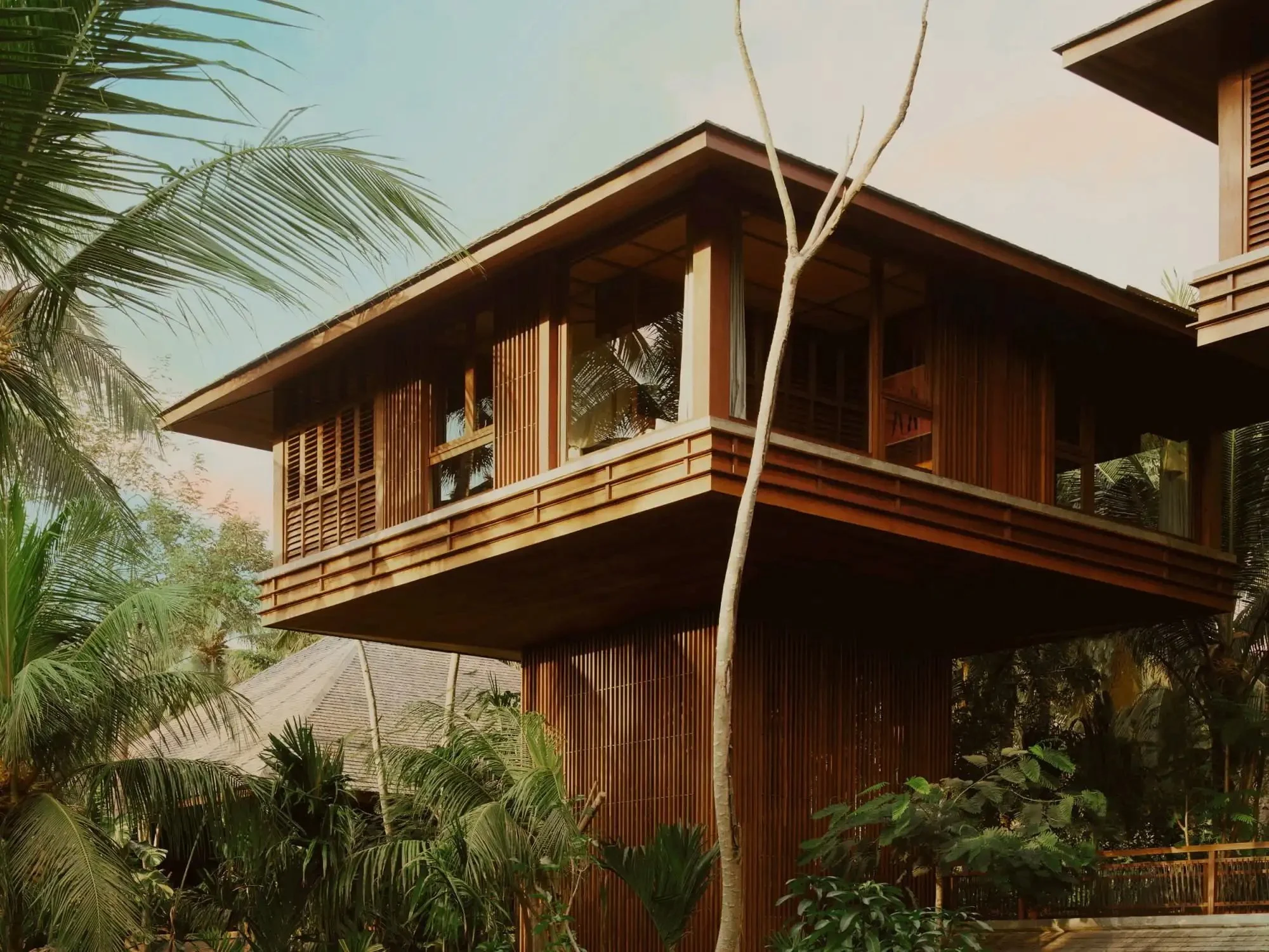 EDITORIAL VIBE: If Wes Anderson had a surf altar. Brutalist towers rise through coconut trees, with interiors that blend Bauhaus, Balinese craft, and slow sensualism. You arrive by secret path and are greeted by incense and tide.
