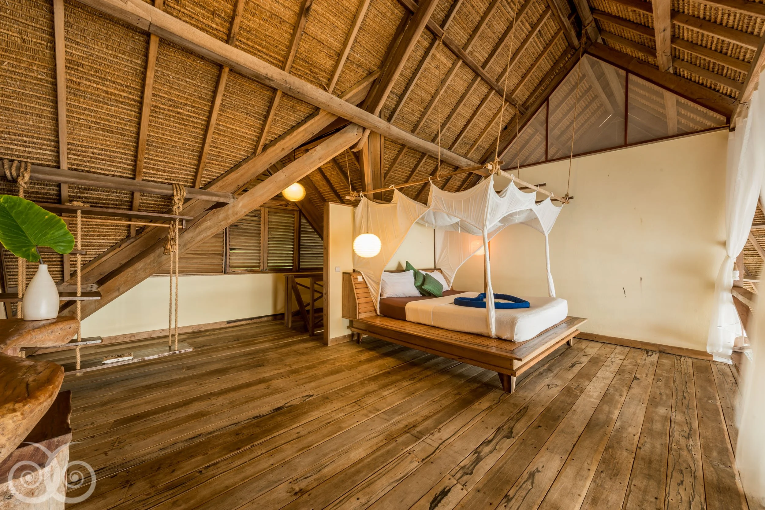 ARCHITECTURE: Built from reclaimed hardwoods and local materials, no concrete, no compromise. The design respects both the island’s topography and its traditions, with elevated platforms allowing for natural water flow and minimal environmental disruption.
