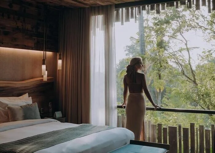 Nirjhara doesn’t just sit in nature - it submits to it. Built around sacred cascades and thick jungle, its low-slung villas and treetop suites dissolve into the landscape like stone into stream. Nothing feels imposed or ornamental - every structure bends gently to the land, honouring the flow of water, wind, and ancient roots that run deep through Tabanan’s soul. This isn’t architecture - it’s a kind of symbiosis, a respectful nesting into the terrain that holds centuries of spiritual significance.