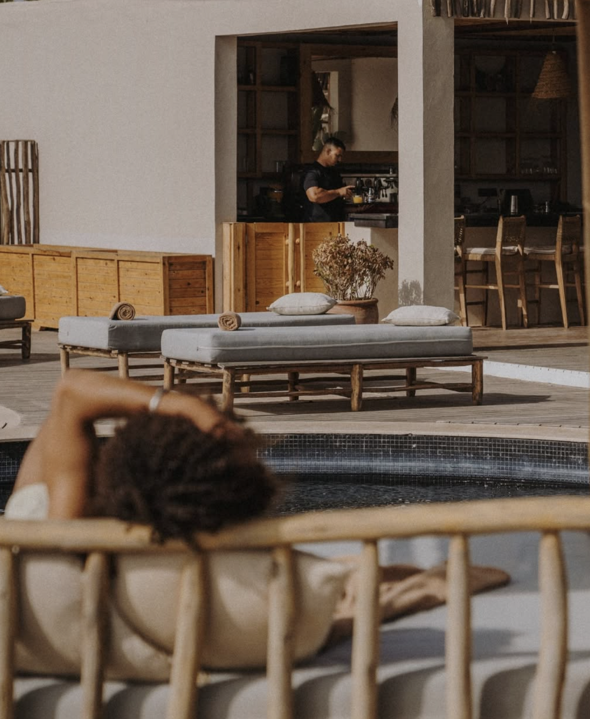 Start with a sage cleanse. Sip Moroccan mint tea from hammered brass. Kitesurf. Nap. Read. Dance barefoot. Journal by candlelight. End in the saltwater pool beneath constellations that don’t care who you are - only that you’re here.