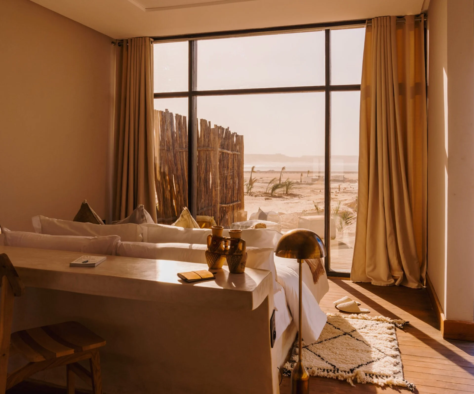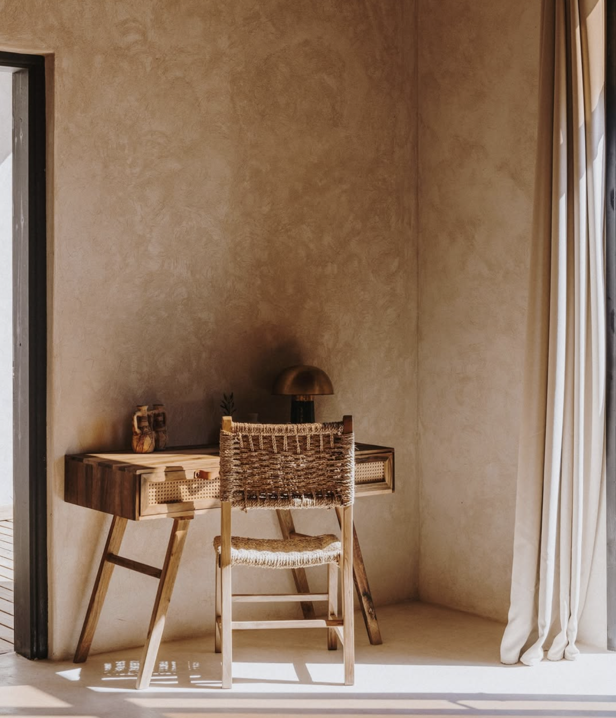 THE LOOK: Earth-toned villas with panoramic decks, Berber motifs, salt-crusted ceramics, and linen so soft it feels inherited.