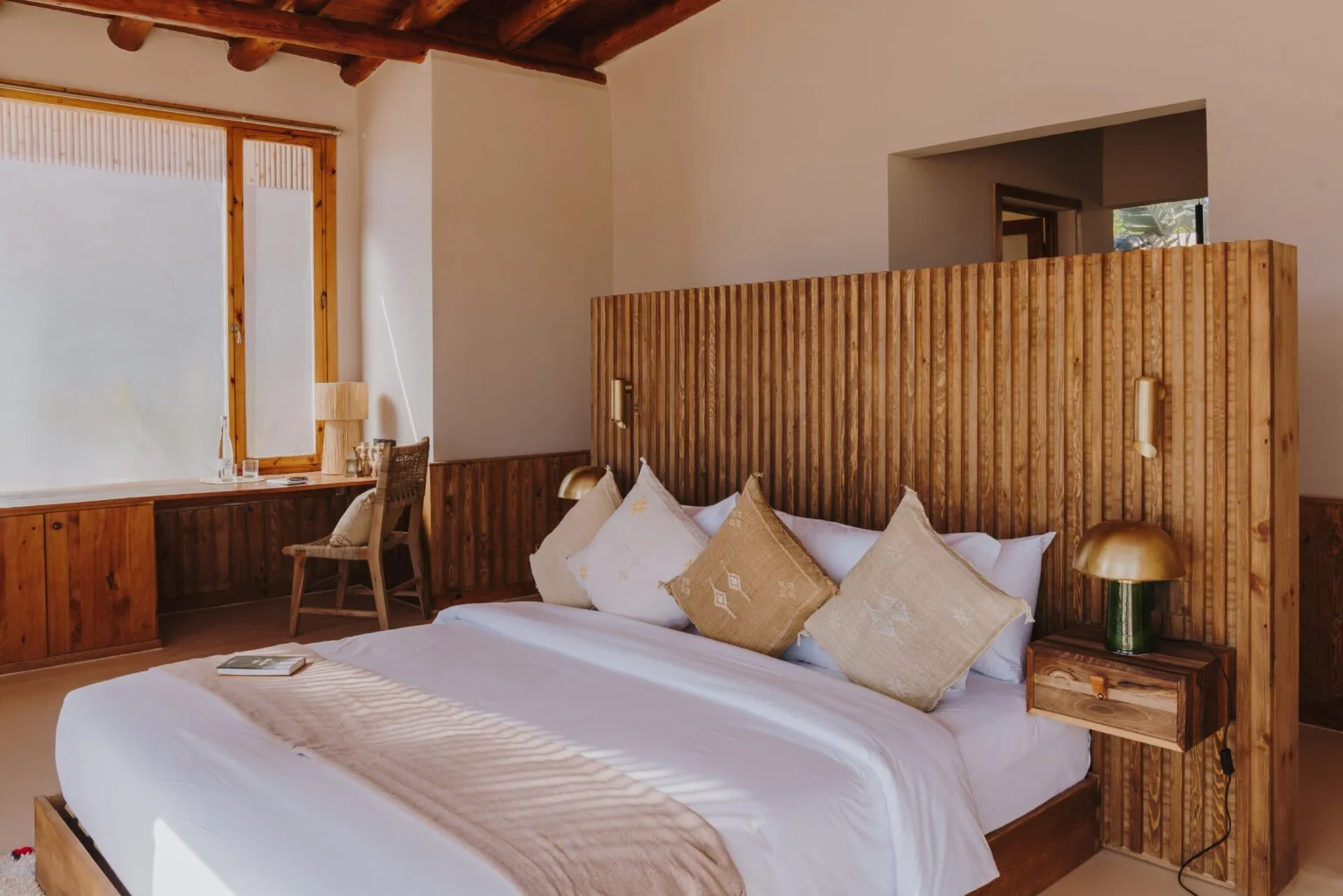 Rooms are open sanctuaries, designed for wind, for light, for pause. Expect handwoven textiles, low-slung furniture carved by desert artisans, and bathrooms scented with eucalyptus and neroli.