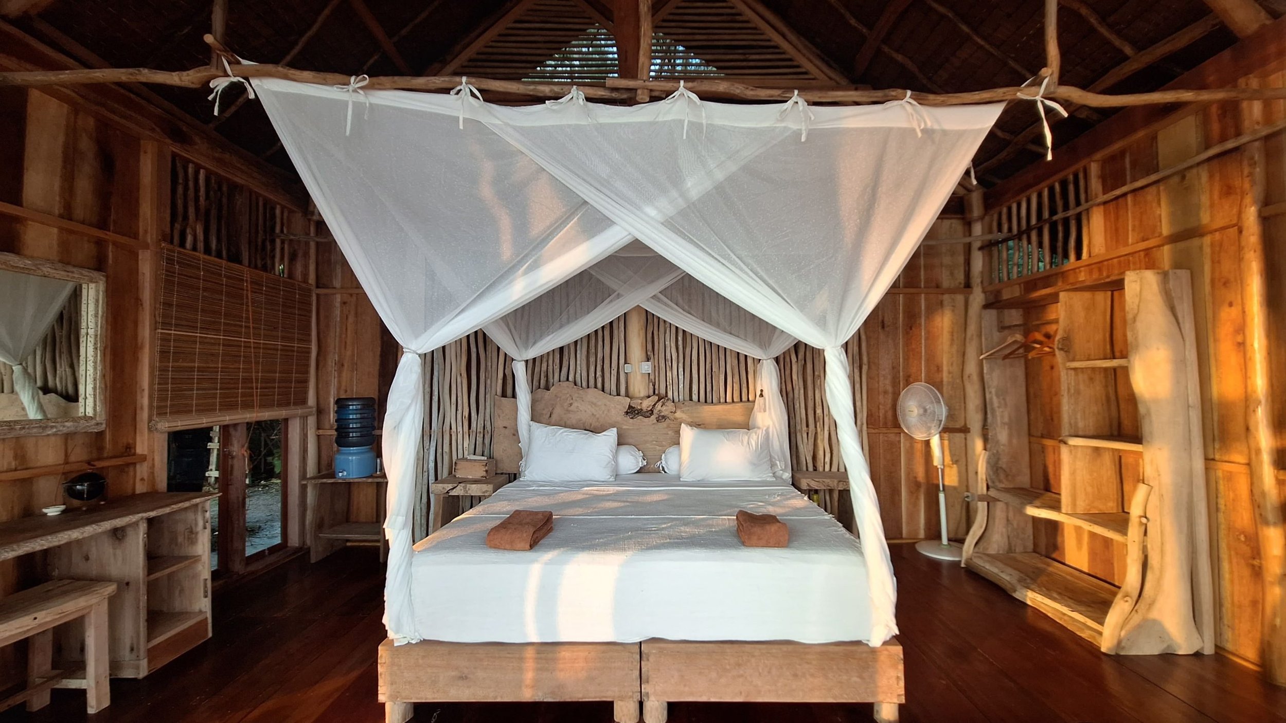 Bungalows are breezy, barefoot, and full of charm. Think: open-air driftwood walls, mosquito-netted beds, and hammocks hung for maximum sea-gazing. Some sit directly on the water; others are tucked beneath island trees. All invite you to move slowly, breathe deeply, and let nature tuck you in.