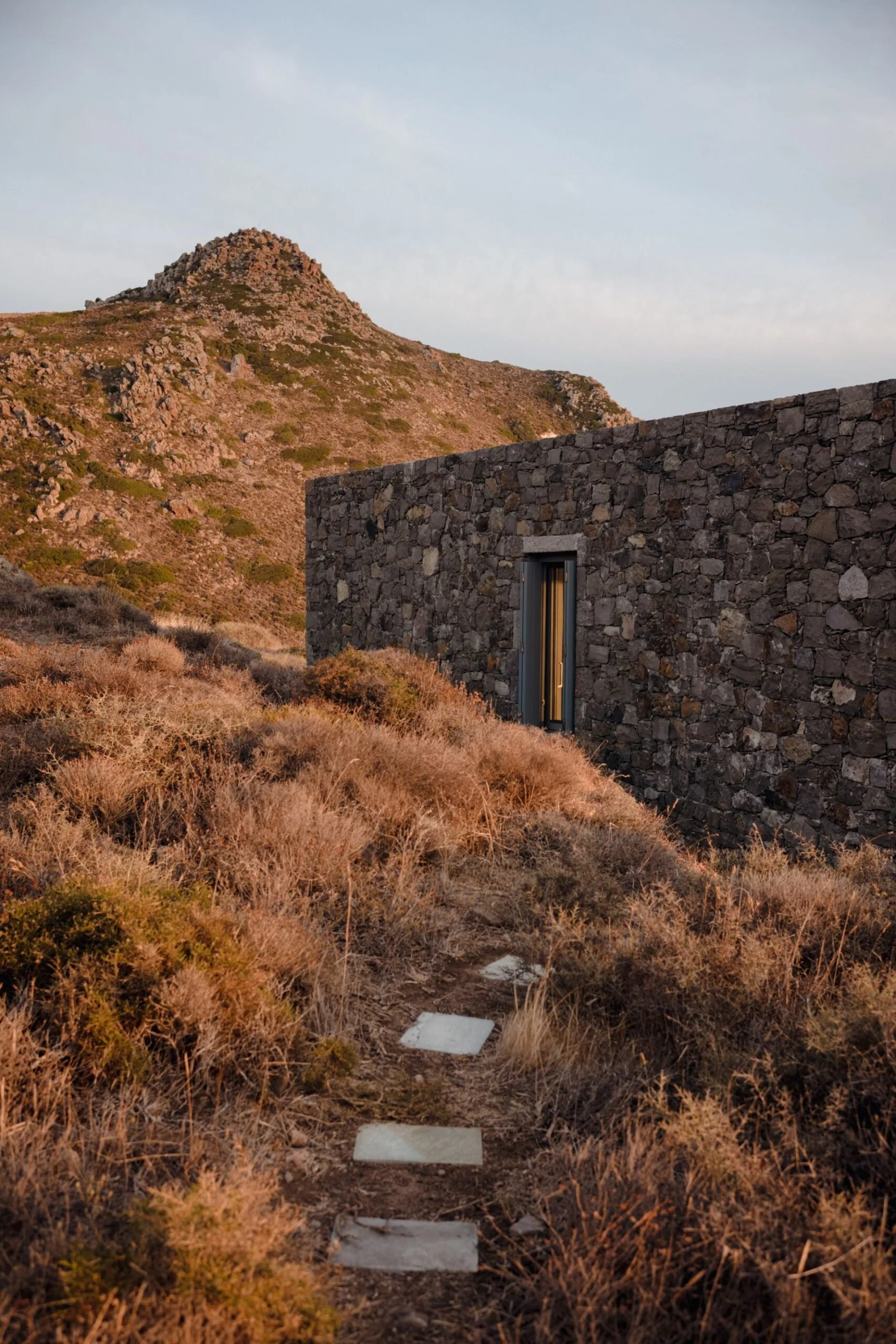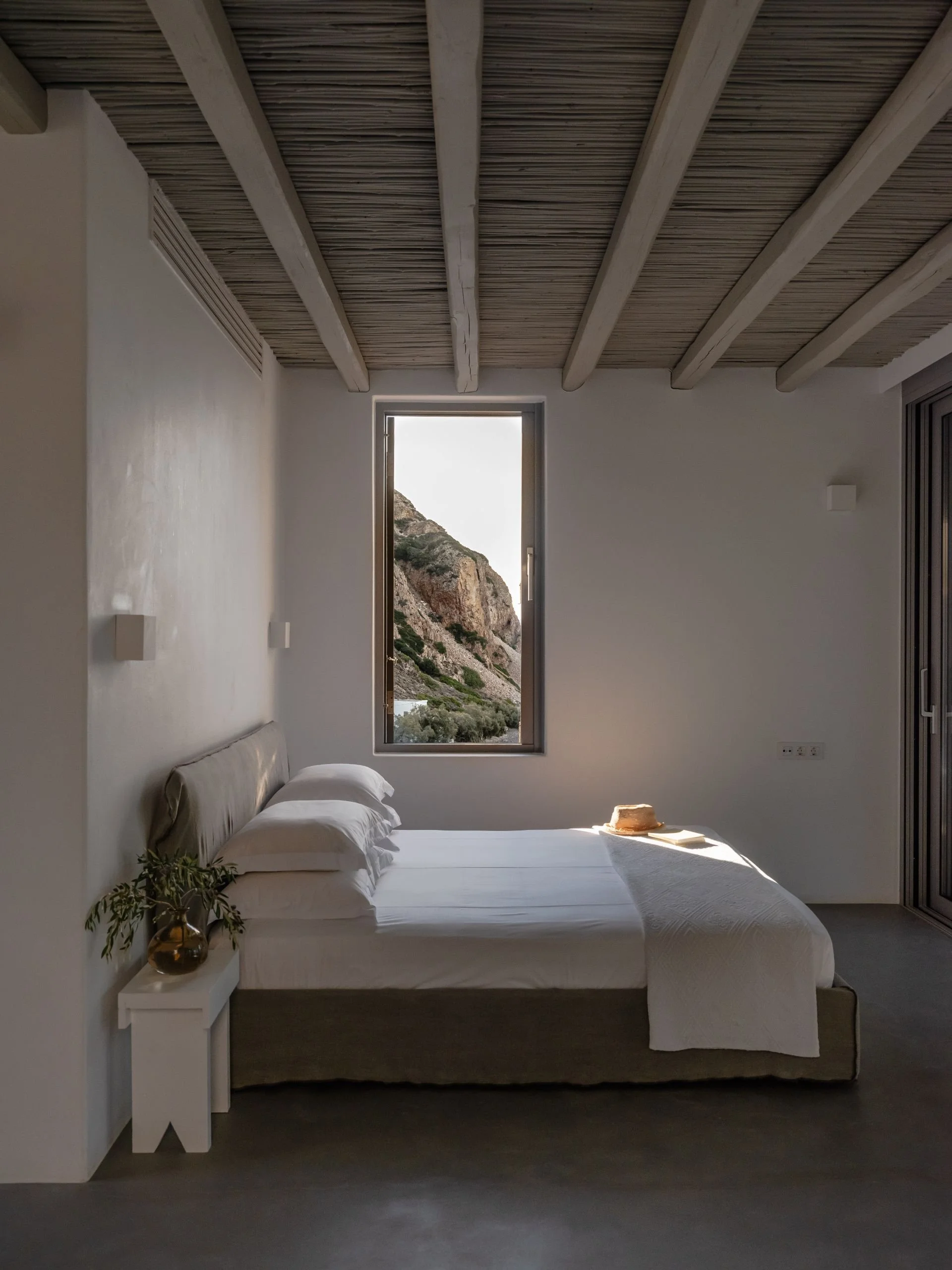 ARCHITECTURE: Built from the bones of the land itself, Skinopi’s villas use only materials found or crafted on Milos. Local stone, terracotta, and reclaimed timber shape the lodge’s palette. No new terraces were carved - every dwelling hugs the landscape with humility. The architecture doesn’t compete with nature - it bows to it.