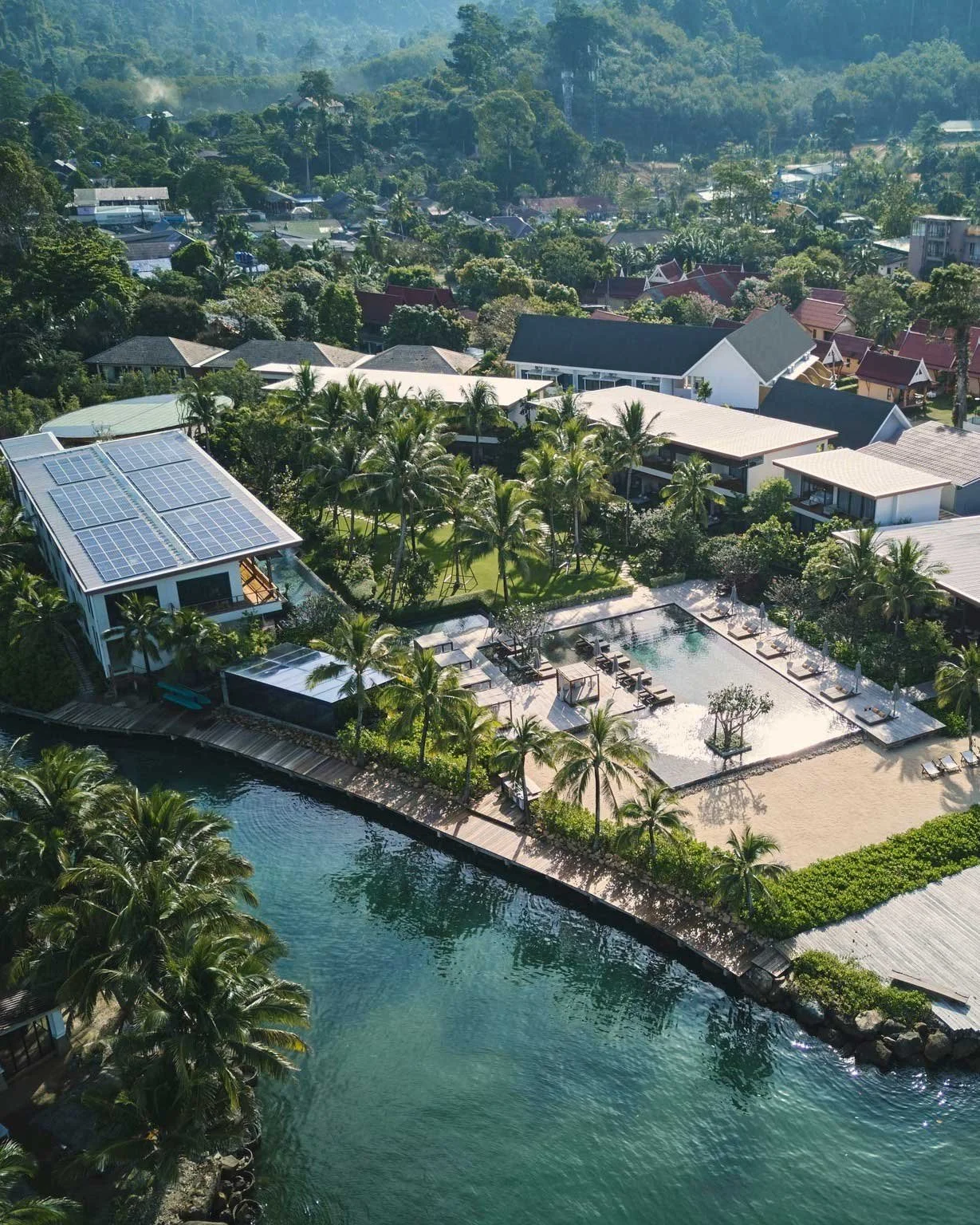 ENERGY: The Retreat Koh Chang sources a significant portion of its daytime electricity through rooftop solar panels, with plans underway to further expand its off-grid capacity. Energy-efficient appliances are used throughout, and double-glazed insulated glass panels help naturally regulate indoor temperature, reducing the need for artificial cooling. The open-air design, guided by nature’s rhythms, encourages airflow over air-conditioning.