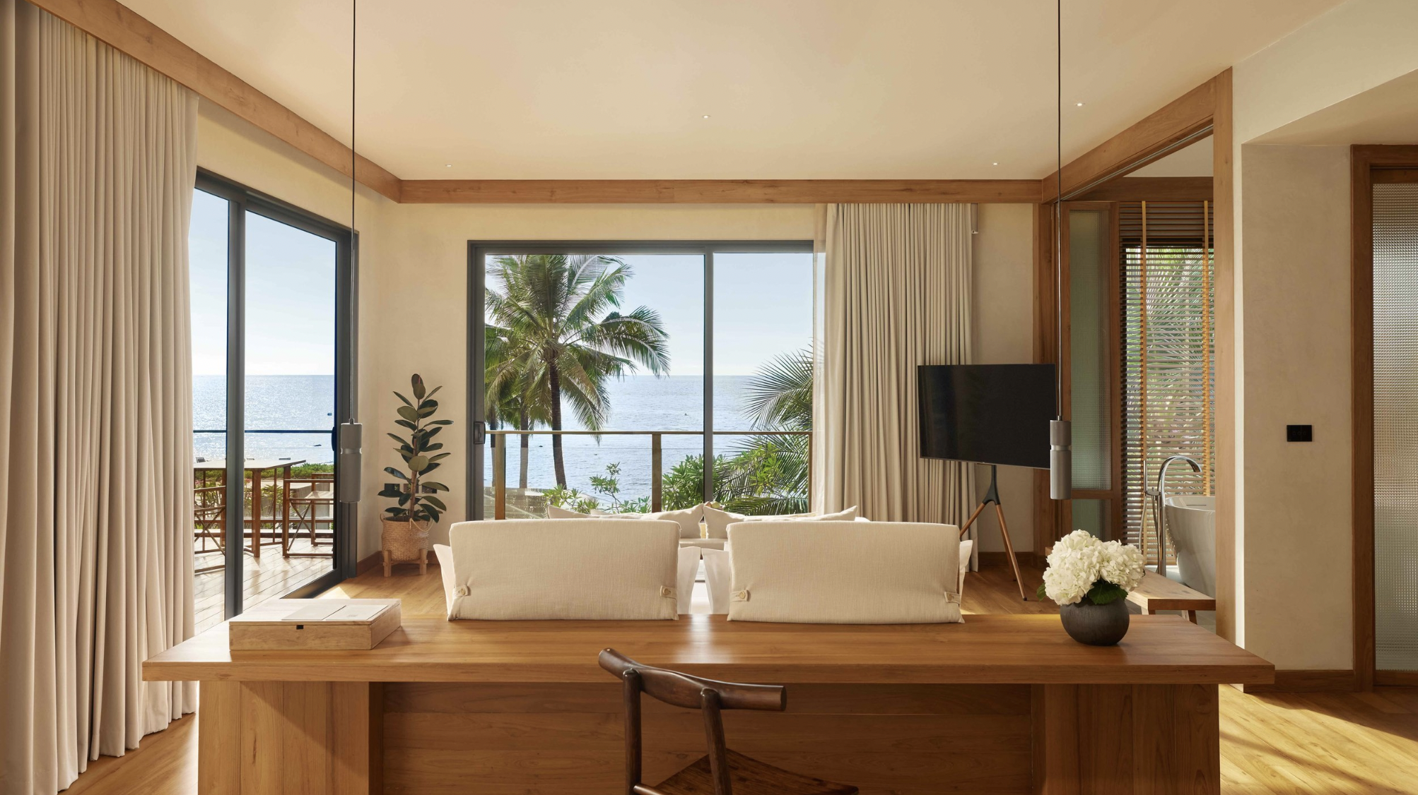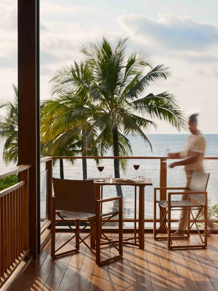 Guests drift softly between the herbal steam room, the shala that breathes with the ocean, the shoreline that invites silence, and their rooms that feel more like sanctuaries than suites. There is a rhythm of restoration at play, a slow remembering of what it feels like to live attuned. Conversations are long and tender. Eye contact feels like a ceremony. Food, when taken, is sacred, prepared with full presence. The plant-based kitchen crafts juices charged with sunlight, Thai herbal broths passed through generations, and slow-crafted nourishment aligned with Ayurvedic and Eastern principles.