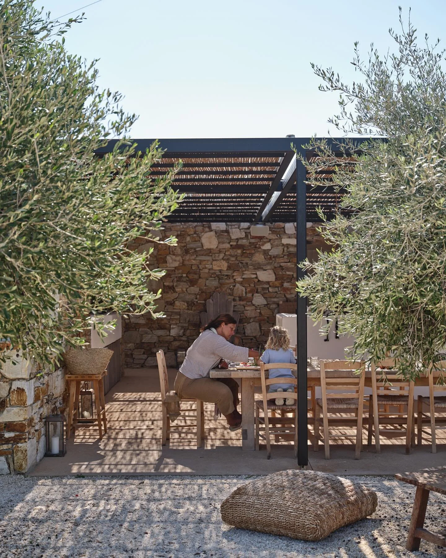 The rooms are sanctuaries of tactility: sand-toned plaster, sculptural ceramics, olive oil soaps, gauzy linens, and beds that seem carved from cloud and sun. Lighting is soft, shadows are welcome. There’s no excess, but every detail feels inevitable. Meals arrive like offerings - handpicked tomatoes, local goat cheese, ancient grain bread, wild figs warmed by the sun, and herbs you walked past earlier on your way to nowhere in particular.