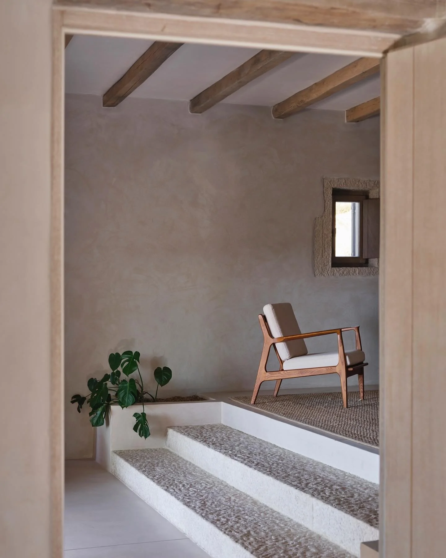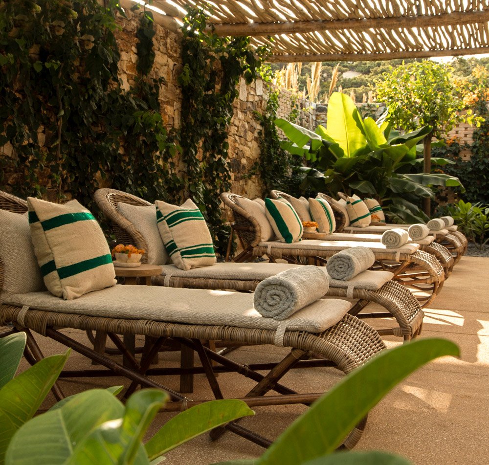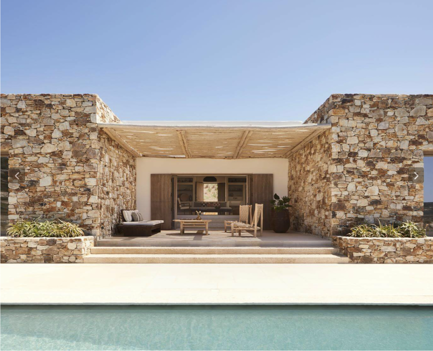THE LOOK: Untamed minimalism - earth-tone villas, hand-hewn stone, linen-draped daybeds, doors that open to sky.