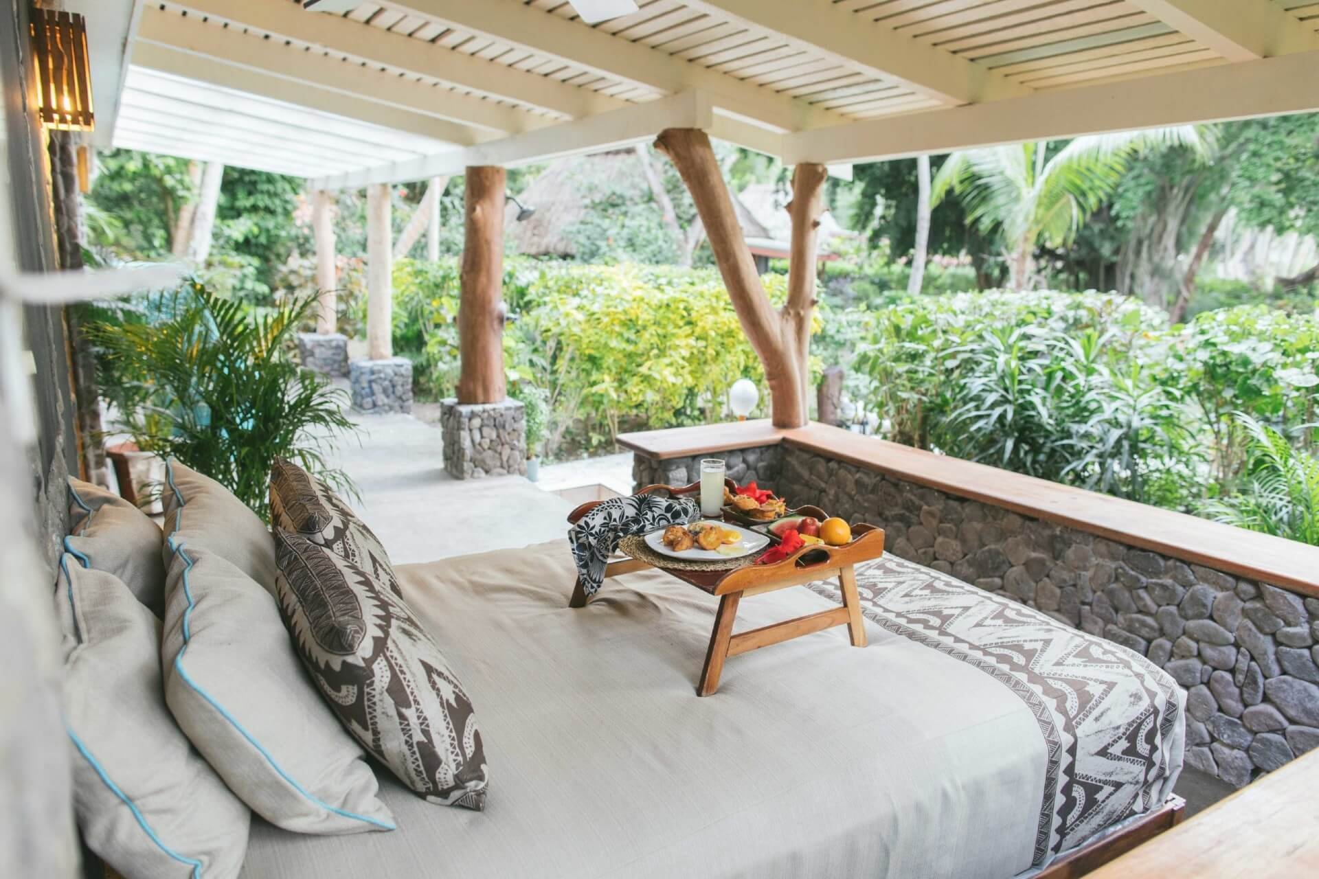 Dining here isn’t scripted. With 80% of produce grown on-island or sourced from surrounding villages, meals reflect the land’s generosity. Grilled walu, wild greens, fresh coconut cream, and wood-fired breads, served on beachside decks or deep in the garden under a canopy of stars.